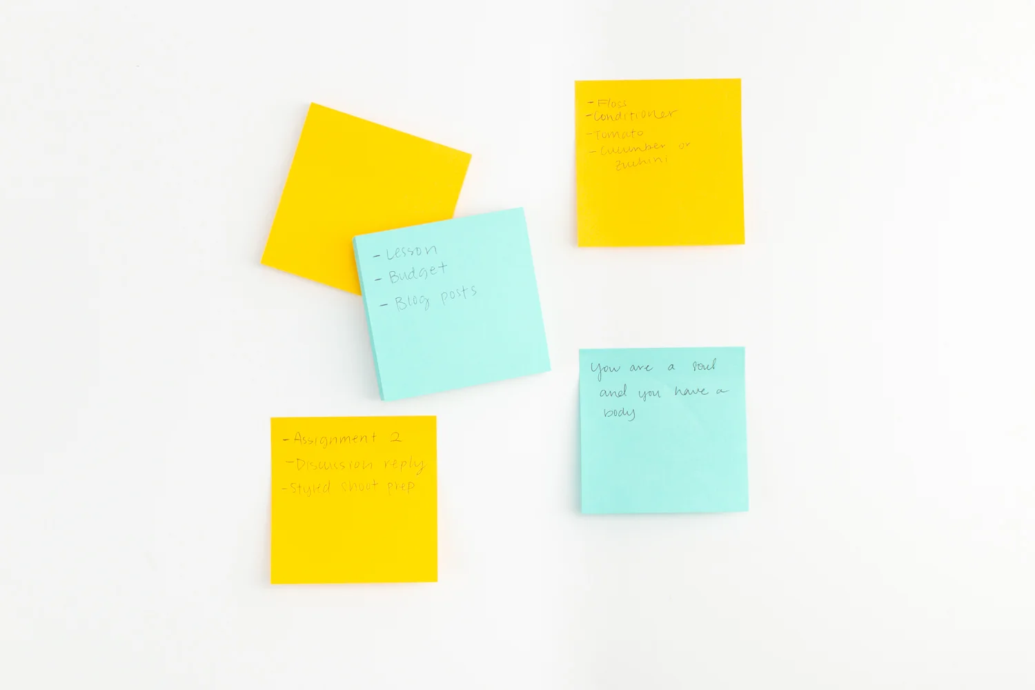 I LOVE sticky notes! I use yellow for urgent to-do lists, writing grocery lists, and for quotes or Bible verses. All other lists and non-important items go on blue sticky notes. If you can’t tell, I’m an organized person. I can be messy, but it’s an organized mess ☺